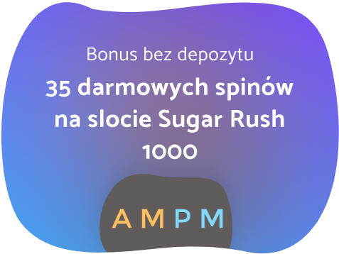 W AMPM Casino bonus bez depozytu jest dostępny dla nowozarejestrowanych graczy, którzy po potwierdzeniu adresu e-mail i numeru telefonu wpiszą kod promocyjny. Nagrodą jest 35 darmowych spinów do wykorzystania w hitowym slocie Sugar Rush 1000 od Pragmatic Play.