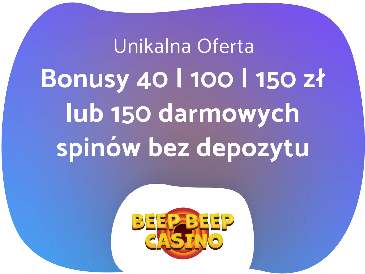 Dziś pod lupę biorę Beep Beep Casino bonus bez depozytu za rejestrację i to, co wyróżnia tę platformę na tle konkurencji, to fakt, że masz do wyboru cztery różne warianty promocji na start. Kasyno przygotowało ofertę, w której każdy znajdzie coś dla siebie – od darmowej gotówki w trzech różnych kwotach (nawet Beep Beep Casino 150 zł) po potężny pakiet 150 darmowych spinów. W tej recenzji dowiesz się stąd, jak wyglądają wymagania dotyczące obrotu oraz który bonus daje największą szansę na skuteczną wypłatę wygranej oraz jakie są dostępne Beep Beep Casino kod promocyjny.